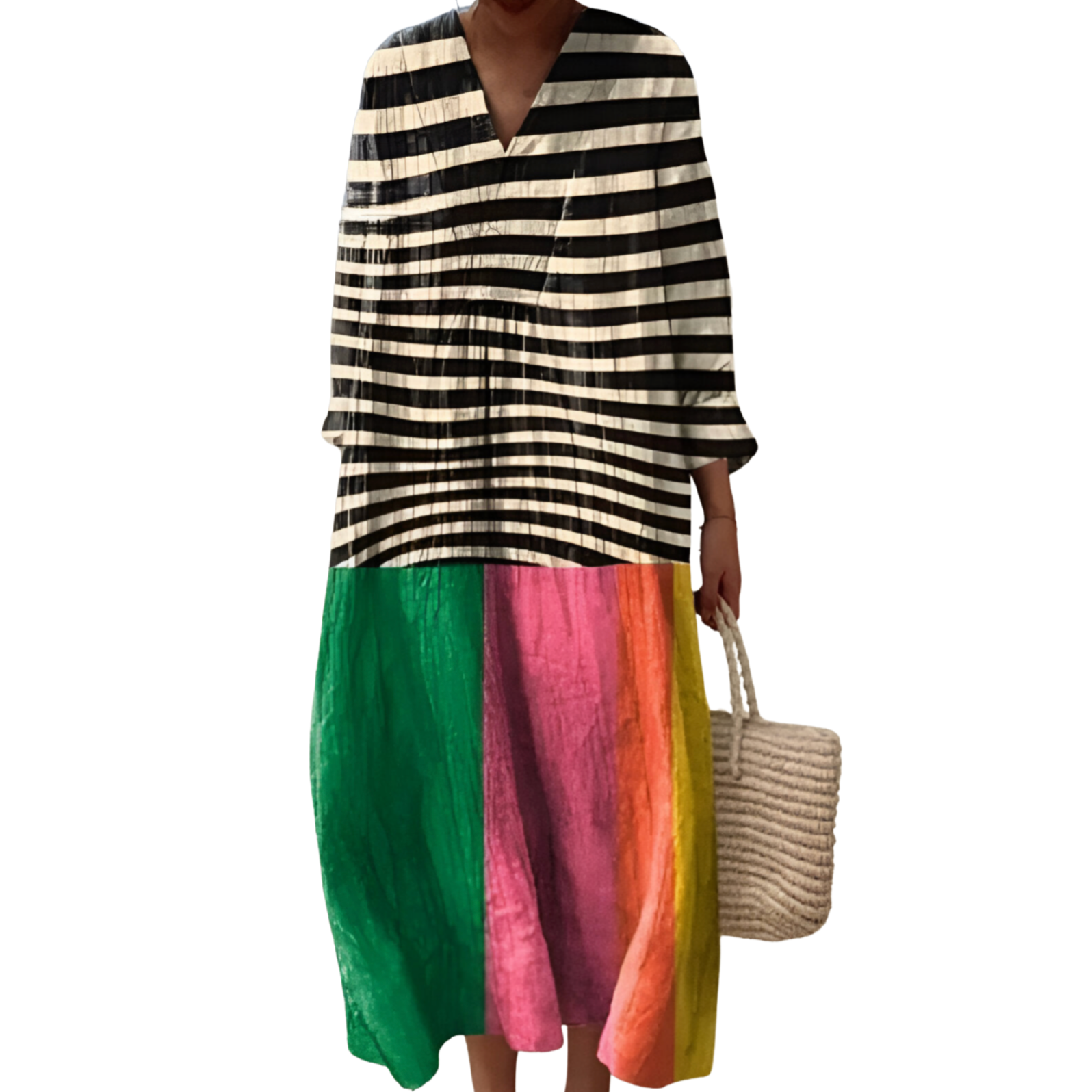 This dress with geometric pattern is a tribute to modern form and free-moving style. Norva-Léa™ combines a distinct expression with a flowing fit – designed to flatter all body types and suitable for both everyday and special occasions.