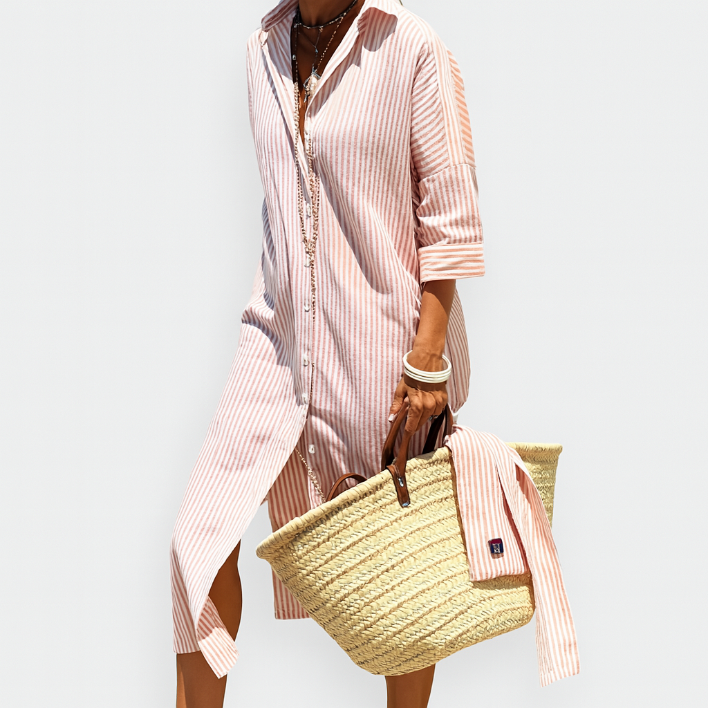 Isabella™ – Striped Button-Up Shirt Dress – Timeless Style with a Modern Edge
